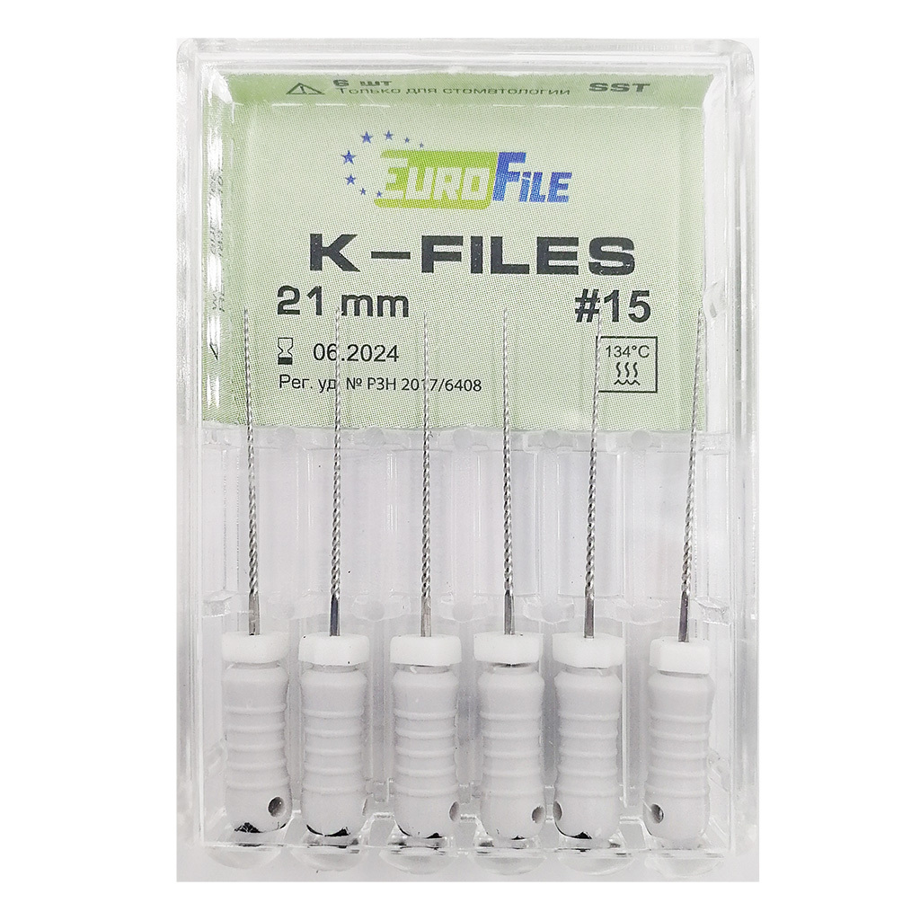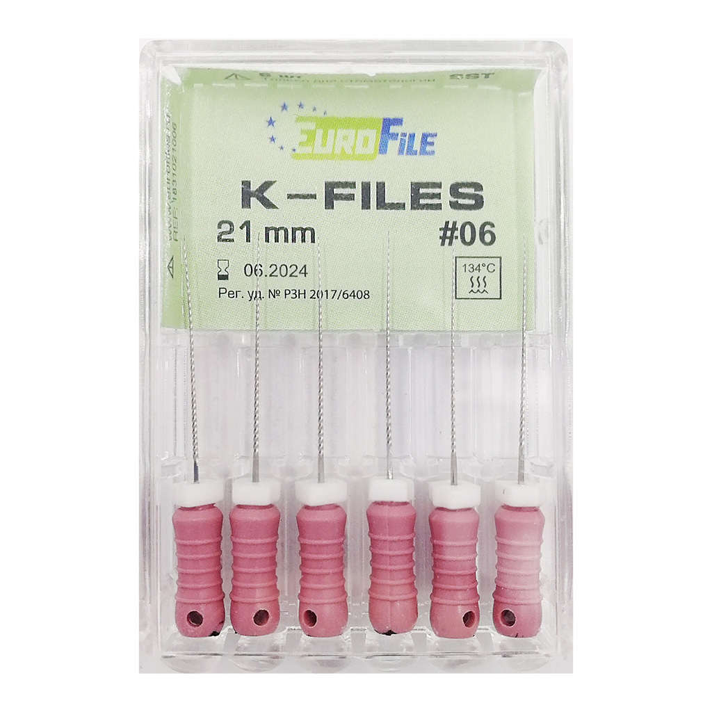 К-файлы 06. 31мм (сталь) 6шт. Eurofile, , шт.. Эндодонтические инструменты ЕВРОФАЙЛ. Н-файл Eurofile №15, 25мм., 6шт., Eurofile, Китай. Н-files ЕВРОФАЙЛ 25мм №08