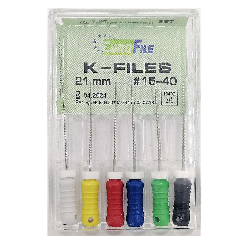 Дрильборы ручной k-files nic l25mm. K-files, 25мм, №10, дрильборы ручные, никель-Титан, 6 шт. Eurofile, упак. Niti k-filescc+ -каналорасш.ручн.(6шт), l=21, 015-040. K-file 21 мм