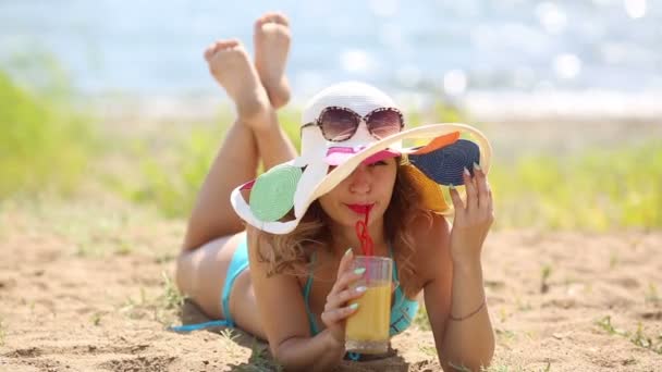 Fille de la plage se prend le jus