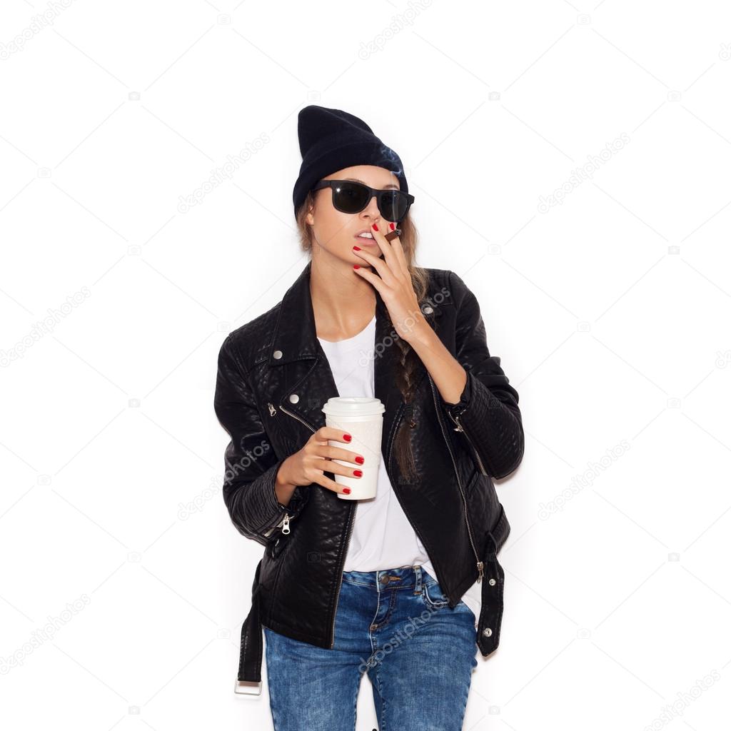 Fille excitée avec des lunettes