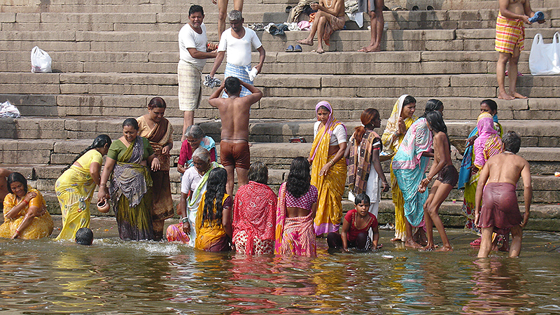 Fille indienne se lave le corps