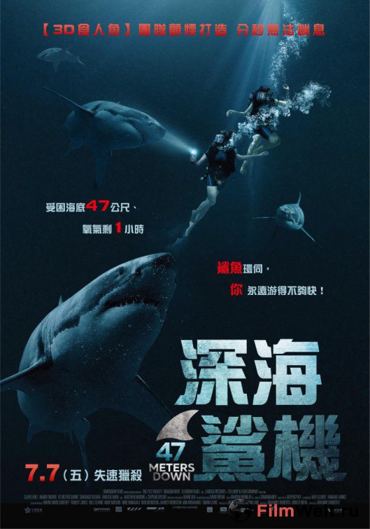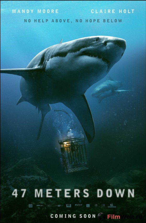 Смотреть онлайн фильм Синяя бездна (47 Meters Down) - Отдыхая на солнечных пляжах Мексики, Лиза и ее сестра Кейт решаются на погружение в клетке к большим белым акулам . Но зрелищный аттракцион оборачивается кошмаром, когда . . .