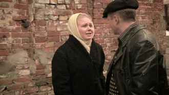 Детективный сериал "Легавый" . 19 -я серия Из сострадания Козырев приводит немцев к себе домой . Узнав о подпольном производстве и охоте на беглецов, Юрий отводит их в пустующую квартиру Корзиной .