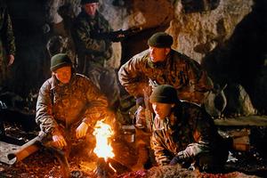 Про фильм . В сюжете фильма ужасов «Псы-воины» несколько английский солдат во главе с командующим сержантом Уэллсом проходят учения против отряда спецназа в шотландской глуши . В арсенале у солдат оружие, заряженное холостыми патронами и рация для связи с внешним миром .