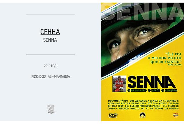 «Сенна» (англ . Senna) — документальный фильм режиссёра Асифа Кападиа, вышедший на экраны в 2010 году . Сюжет . Лента рассказывает о карьере знаменитого бразильского автогонщика Айртона Сенны, начиная с его первых шагов в . . .
