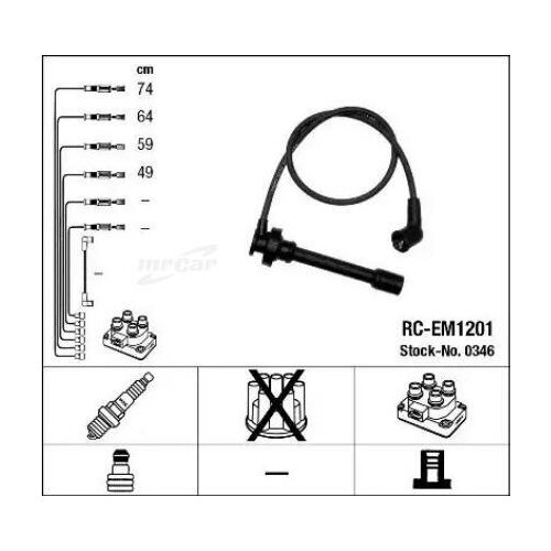 NGK-NTK 0346 Fils d'allumage (jeu) [RC-EM1201]Fabricant : Ngk Article : 0346 Nom : Jeu de fils d'allumage Le prix est pour : 1 pièce Nombre de fils : 4 Fil d'allumage : La résistance du fil d'allumage correspond à la couleur de la pièce d'origine : noir