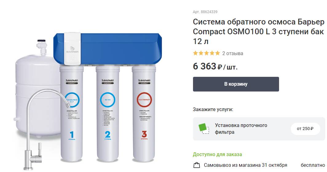 Фильтр барьер компакт осмо 110 фото