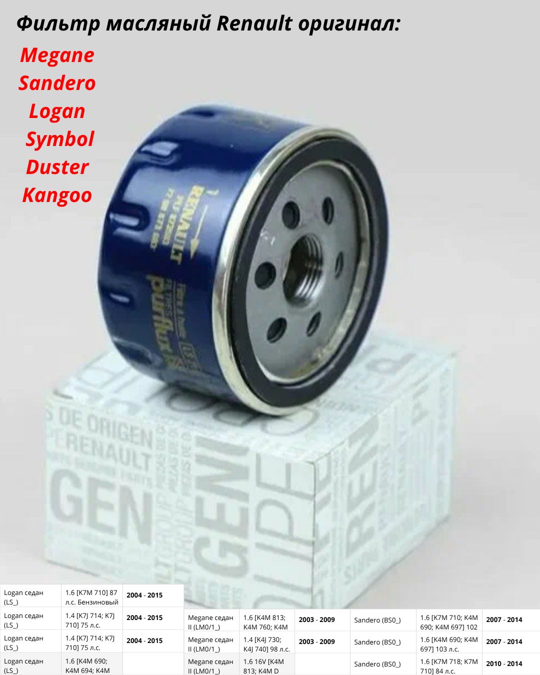 Фильтр масляный k4m 1.6 124 фотографий