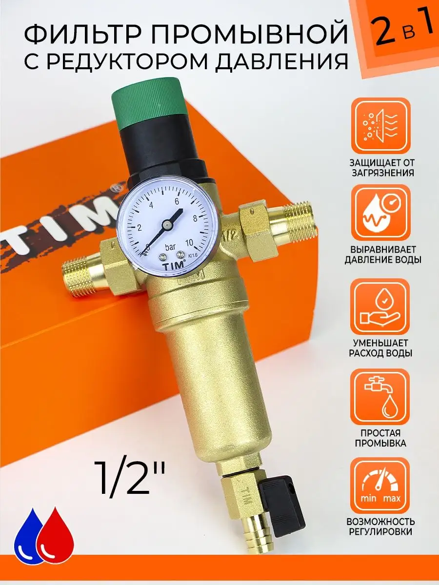 Фильтр промывной с редуктором tim 121 фотографий