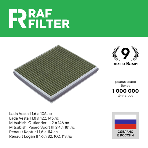 RAF Filtre filtreleri, orijinal OEM filtrelere benzer şekilde tasarlanmış ve üretilmiştir; aynı tasarıma, montaj boyutlarına ve özelliklere sahiptir: temizleme verimliliği, hava akışı direnci ve servis ömrü. Tüm yeni gelişmeler, GOST R 53844-2010 uyarınca tarafımızdan zorunlu testlere tabi tutulmakta ve ancak olumlu bir sonuç alındıktan sonra seri üretime geçmektedir. RAF Filtre marka filtreler gerekli tüm testlerden geçmekte ve gerekli tüm sertifikalara sahiptir. Tüm ürünler iki aşamalı kalite kontrolünden geçer: üretimde ve müşterilere sevkiyata hazırlık aşamasında Şu araçlara uygundur: Lada Vesta 1 1.6 (2015-) Lada Vesta 1 1.8 (2015-) Mitsubishi Outlander 2 2.0 (2005-2013) Mitsubishi Outlander. 2 2.4 ( 2005-2013)Mitsubishi Outlander 2 3.0 (2005-2013)Mitsubishi Outlander 3 2.0 (2012-)Mitsubishi Outlander 3 2.4 (2012-)Mitsubishi Pajero Sport 3 2.4 D (2015-)Mitsubishi Pajero Sport 3 3.0 (2015-) ) Renault Duster 2 1.3 T (2020-)Renault Duster 2 1.5 D (2020-)Renault Duster 2 1.6 (2020-)Renault Duster 2 2.0 (2020-)Renault Logan 1 1.6 K7M (2004-2015)Renault Logan 1 1.6 K7M (2004- 2015)Renault Logan 2 1.6 (2012-2022)Renault Logan 2 1.6 H4M (2012-2022)Renault Sandero 2 1.6 K4M (2013-2022)Renault Sandero 2 1.6 K7M (2013-2022)OEM numaraları: 7803A0047 803A00 57803A0437803A109