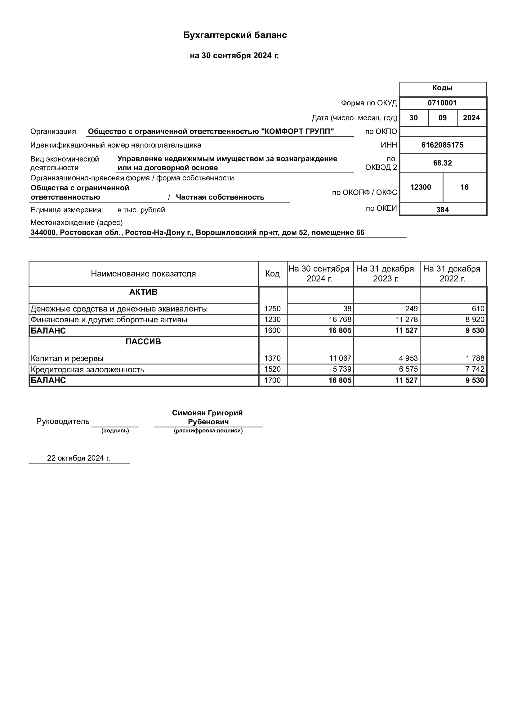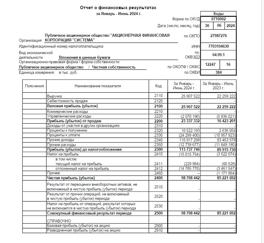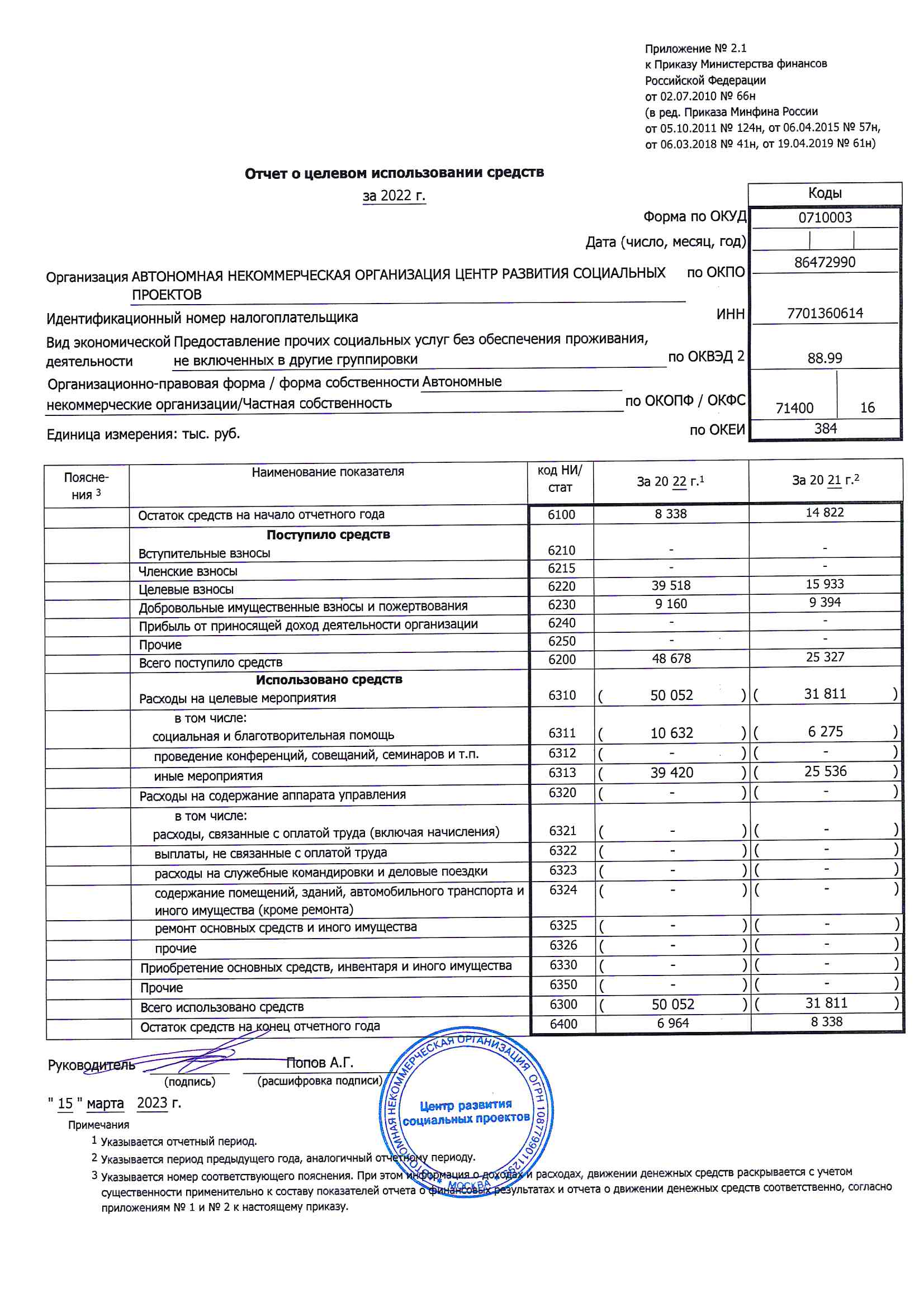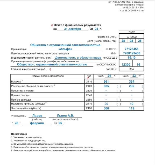 Финансовый отчет учредителям