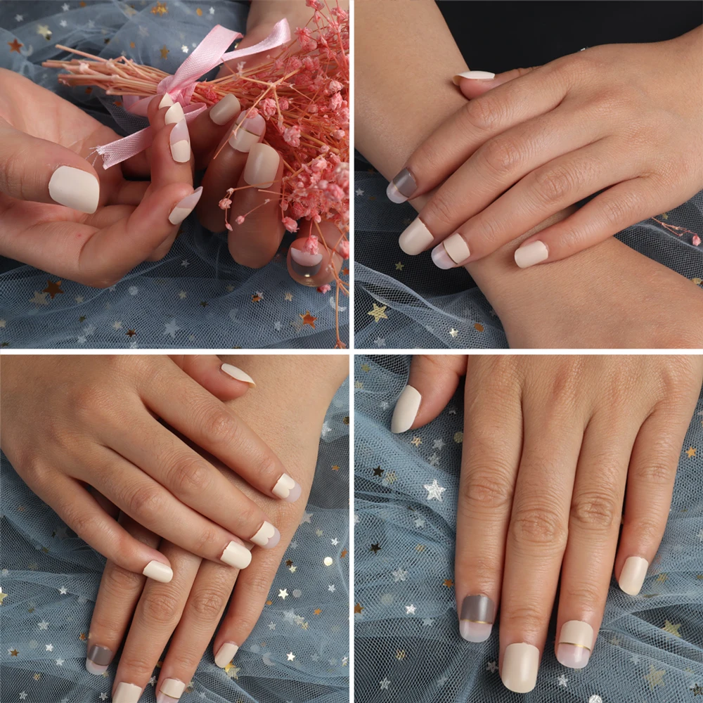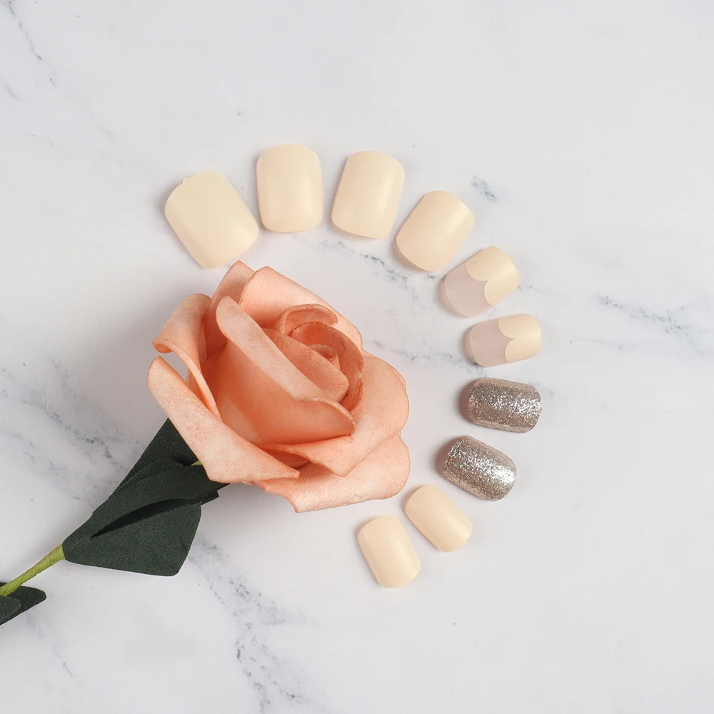 "FingerQUeen Fake Nail Tips Short Nail Style Full Coverage Detachable Nail Art Square Short Glossy French Fake Nails Art" * Buy Now Just For 2$