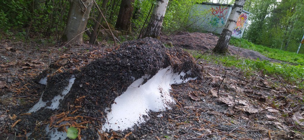 Снег уже почти растаял, вот последний вам нашел. Местные говорят, скоро расцветет сирень. Фотка немного темная, тут в 22-23 в это время года уже начинает потихоньку темнеть.