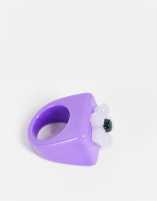 Кольцо с цветком из каучука -Фиолетовый цвет . Кольцо Vintage SupplyЗавершенный образЦветочные мотивыСуженная к концам основаГладкая поверхность . .