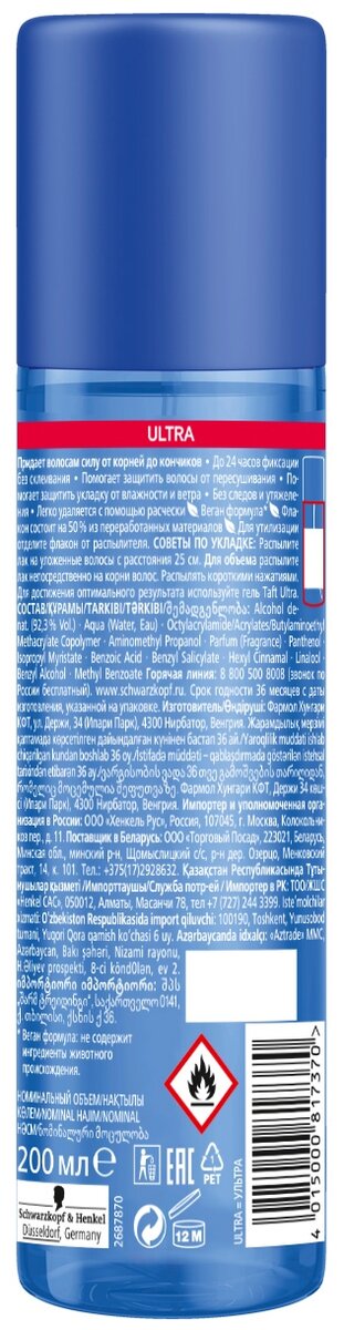 Taft Жидкий лак для волос Ultra для моделирования, экстрасильная фиксация, 200 мл . 4 .8 . Жидкость для укладки Taft "Объем", очень сильная фиксация, 150 мл . До 100% больше объема для всех типов волос .