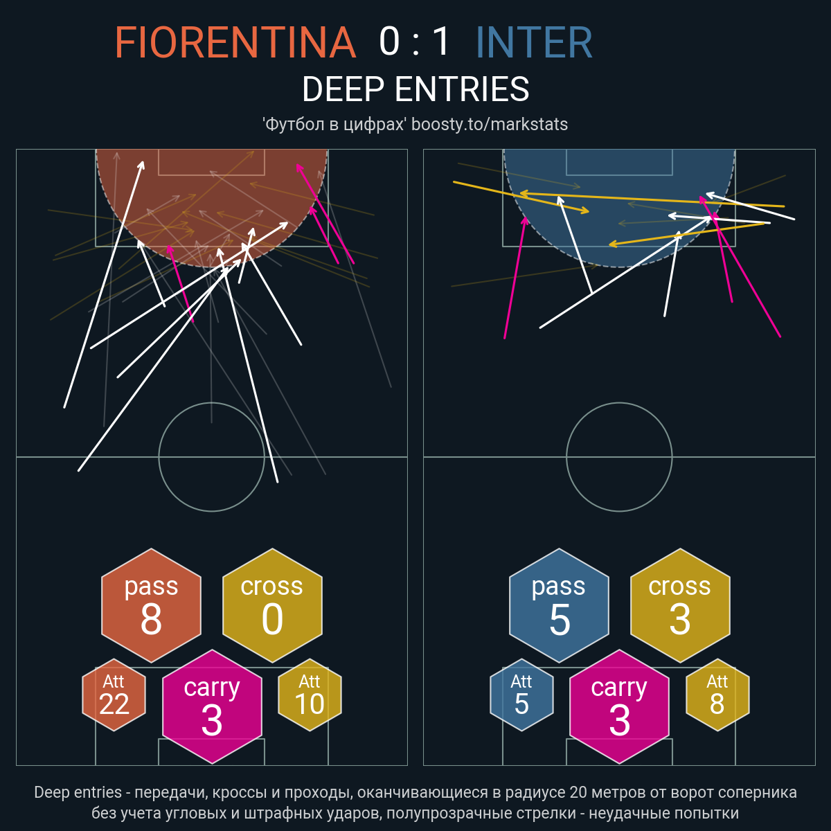20 успешных передач из 27 попыток (2 под удар, 3 с продвижением, 6 на трети соперника)