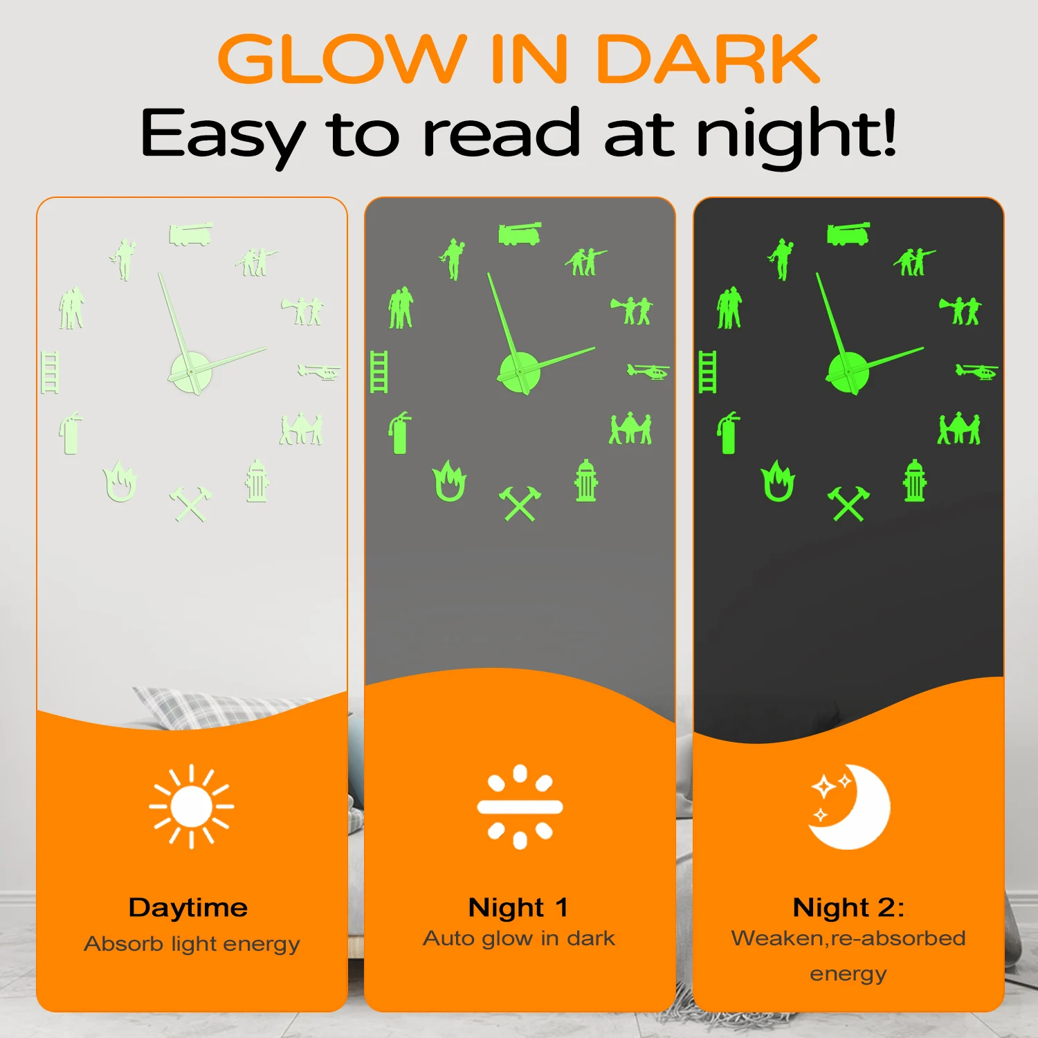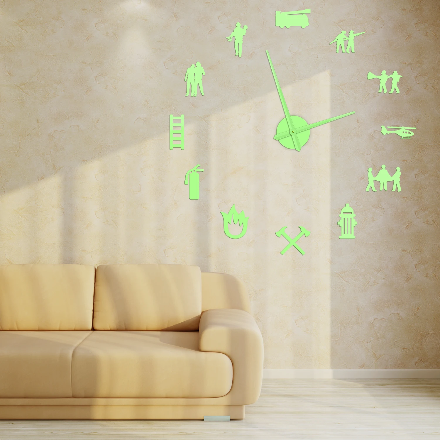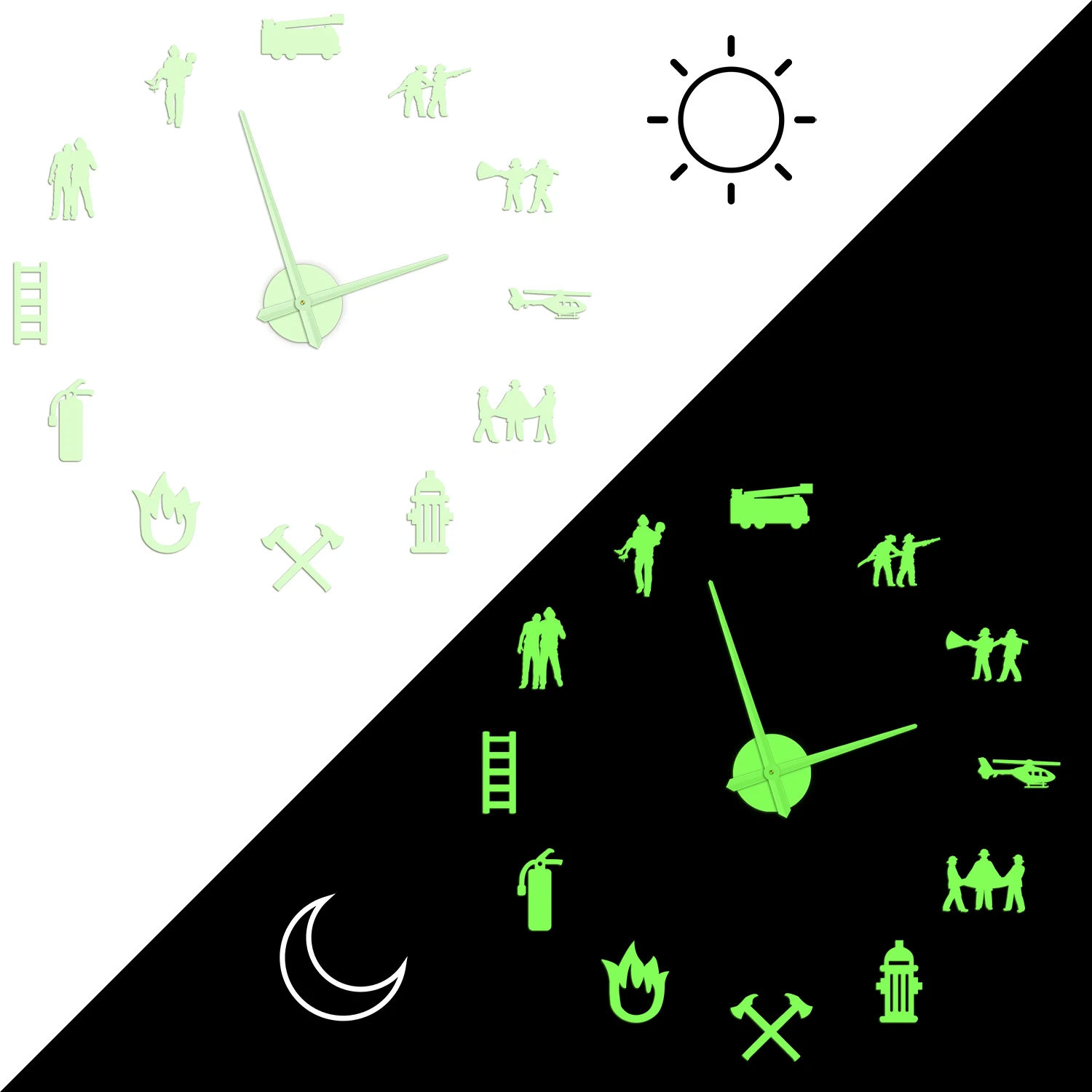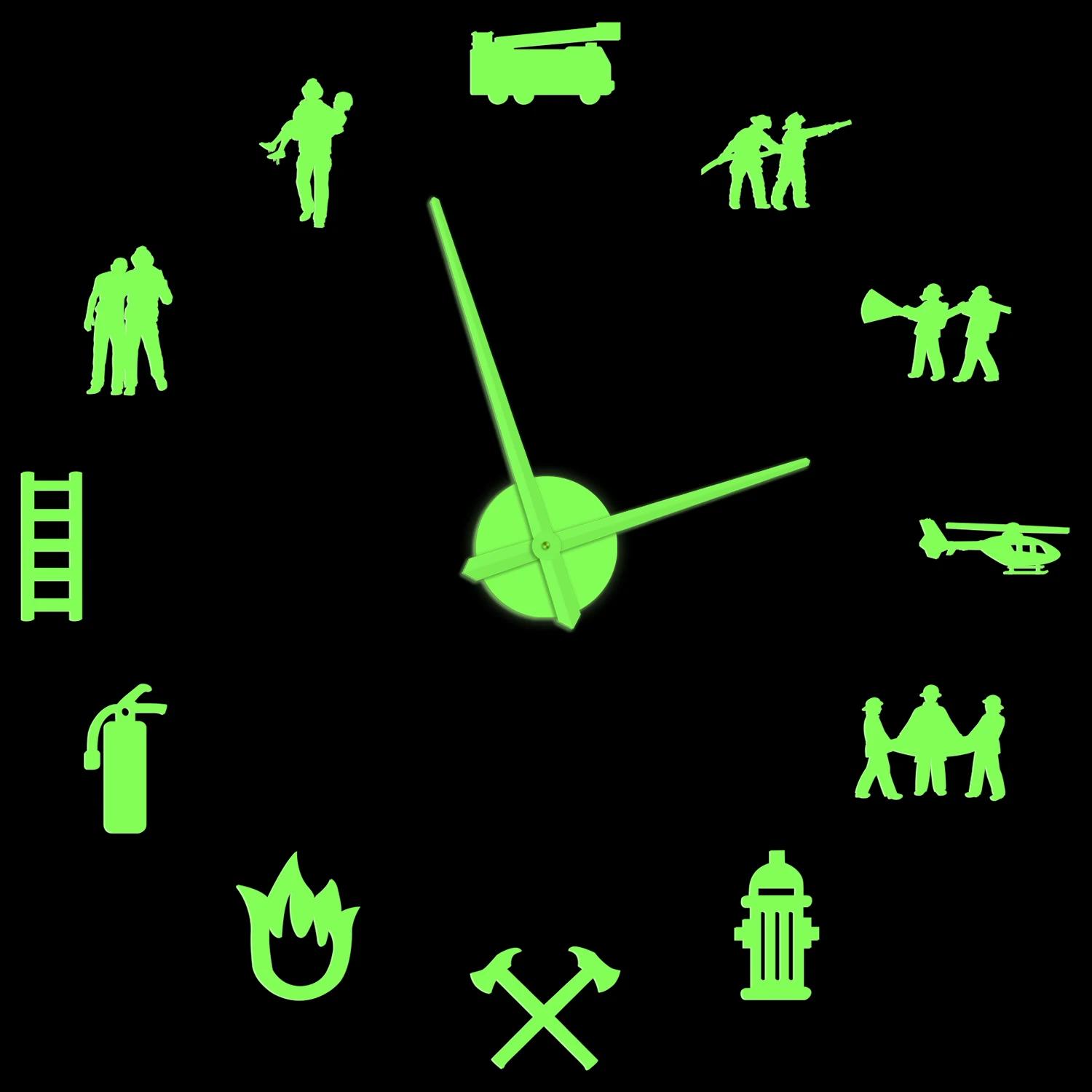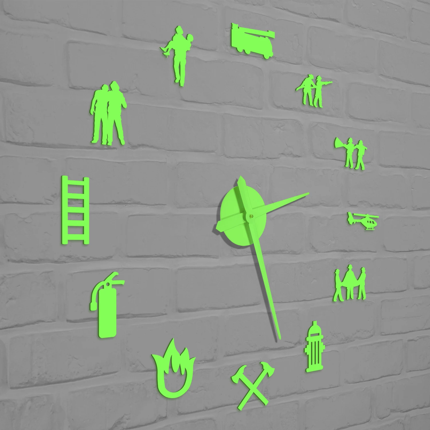 laUpDHOPtHere you can buy Firefighter Glow in Dark Wall Clock For Fire Department Firefighting Rescue Hydrant Equipment DIY Sticker Large Illusion Watch with free delivery to your post office.