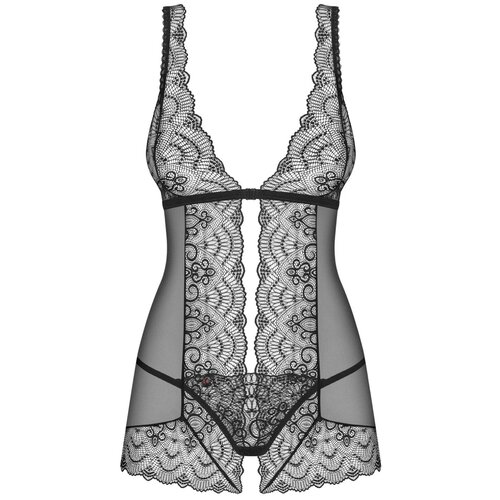 Avrupalı üretici Obsessive'den kadınsı babydoll FIRELLA. Yumuşak elastik örgü, narin çiçekli dantellerle birleştirilmiştir. Yaka kısmında kullanışlı toka ve çıkarılamayan ayarlanabilir askılar. Arkada asimetrik etek ucu. Tanga külot dahildir.