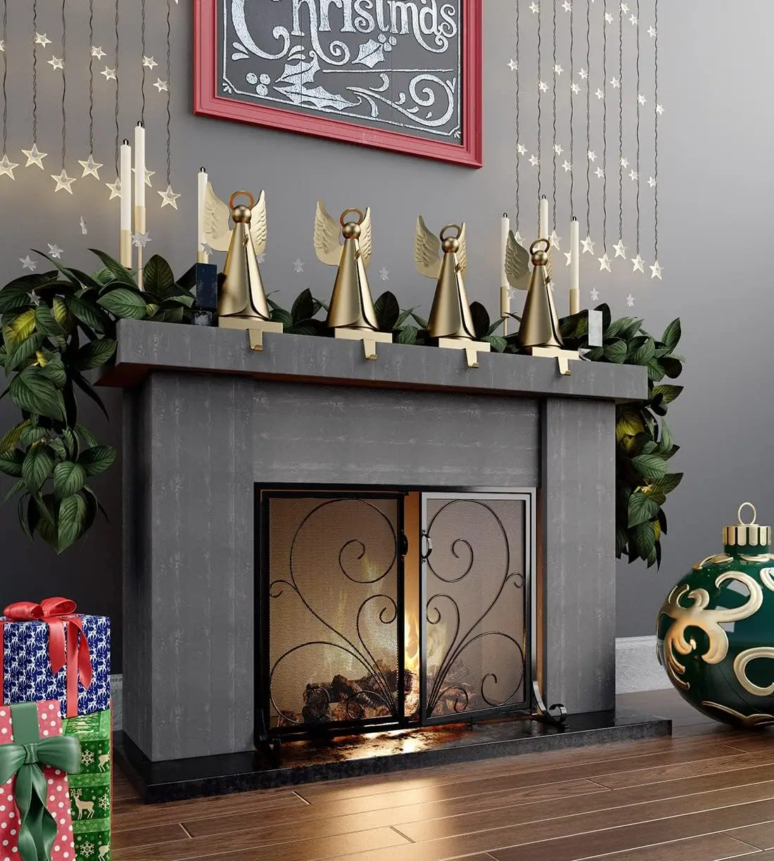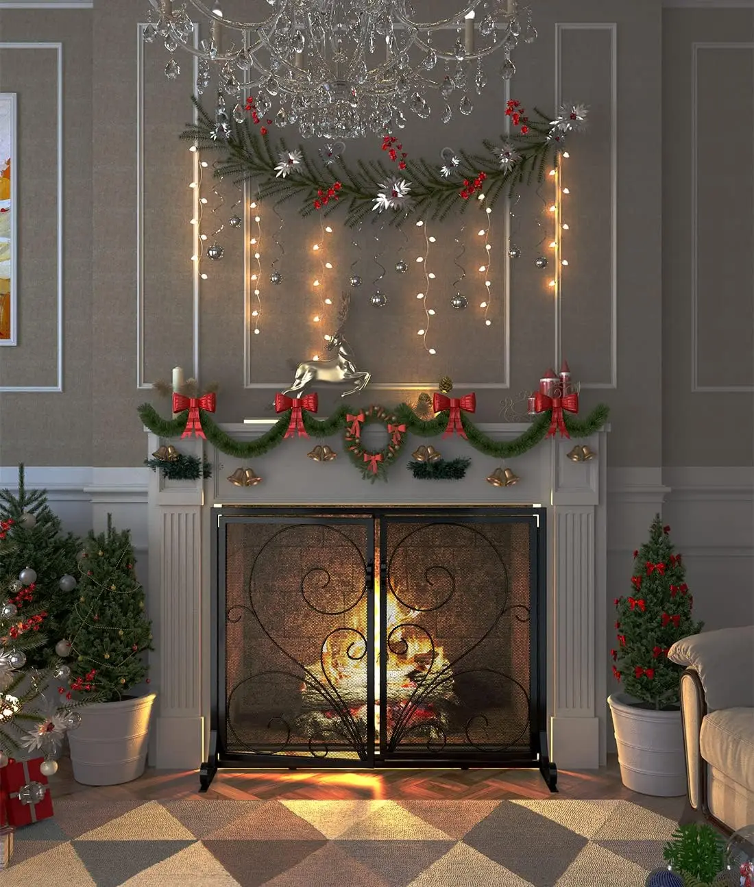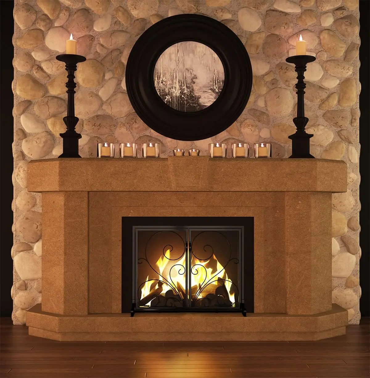"Fireplace Screen with Doors,Solid Wrought Iron Frame with Metal Mesh, Flat Panel Decorative Fireplace Screen with Scroll Design," * Buy Now With Free Shipping Just For $78