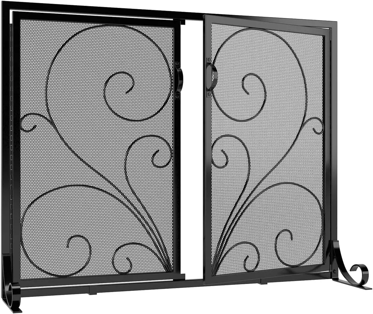 XyeGfeVKkHere you can buy Fireplace Screen with Doors,Solid Wrought Iron Frame with Metal Mesh, Flat Panel Decorative Fireplace Screen with Scroll Design, with free delivery to your post office.