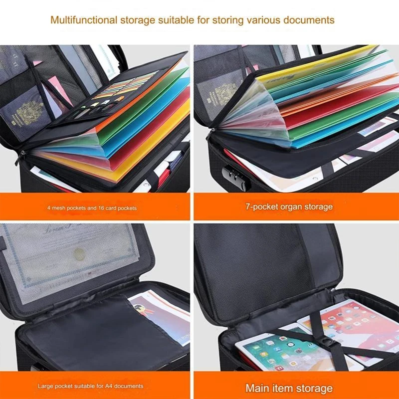 vrZkqnqBEcHere you can buy Fireproof Document Bag with Lock Storage Box Large Capacity Bill Receipt Storage Bag Briefcase for Important Documents Files with free delivery to your post office.
