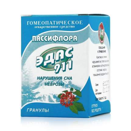 Пассифлора ЭДАС-911 , 20 г . Нарушения сна, неврозы . бессрочно . Гранулы гомеопатические . Активные вещества: Coffea arabica (кофейное дерево) С6, Strychnos ignatii (чилибуха игнация) С6, Passiflora . . .