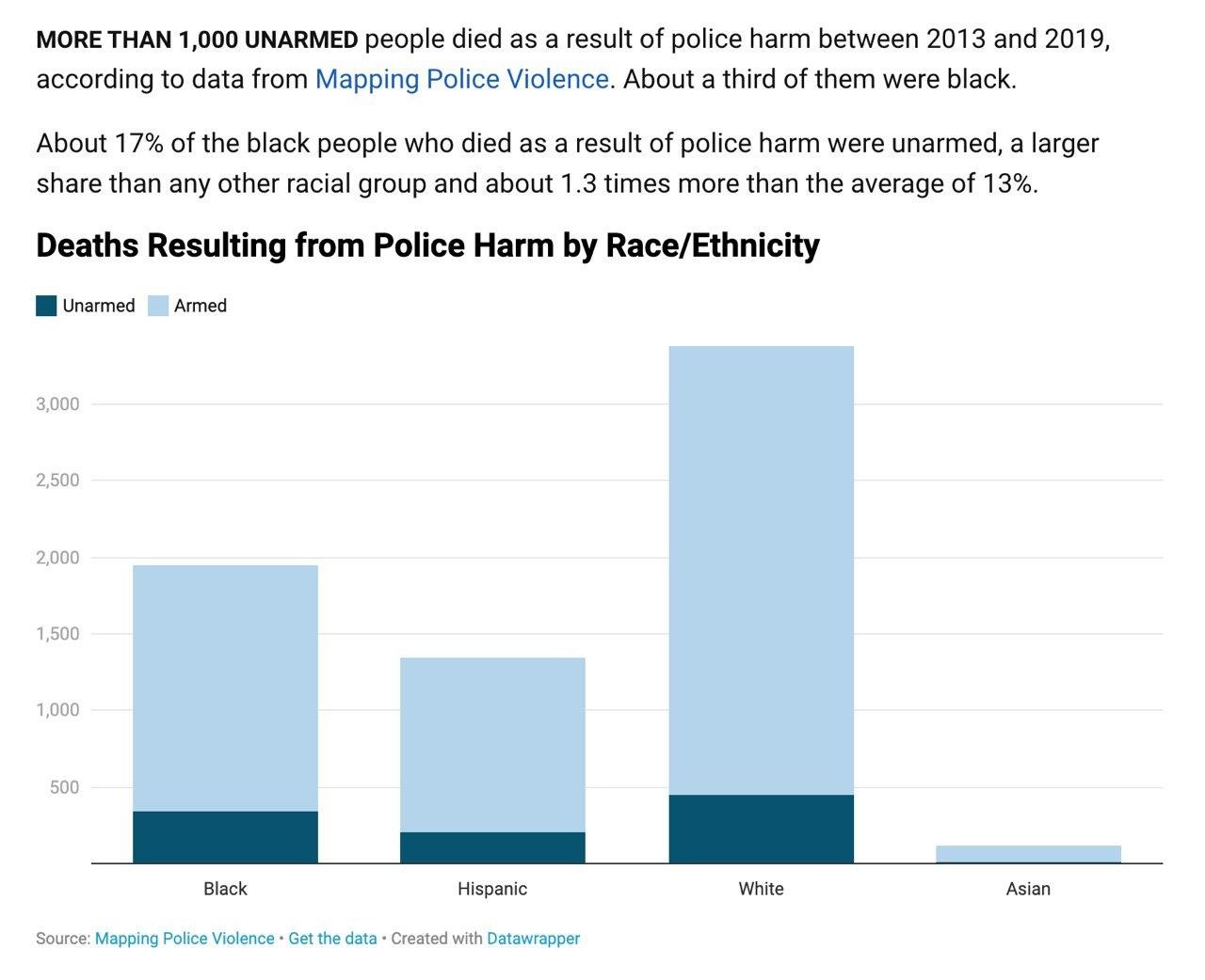 Статистика за 13-19 год о количестве смертей от полицейского произвола в США