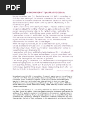 My First Day in University/College Essay