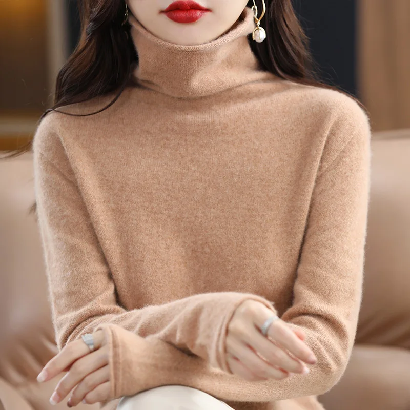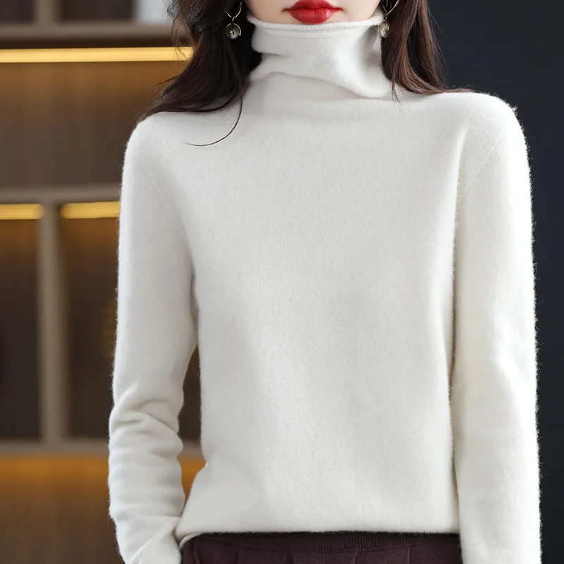 dLmhNneMTHere you can buy First-Line Ready-To-Wear Pile Collar Pure Wool Sweater Women's Spring Autumn Loose Bottoming Top Basic Knitted Cashmere Sweater with free delivery to your post office.