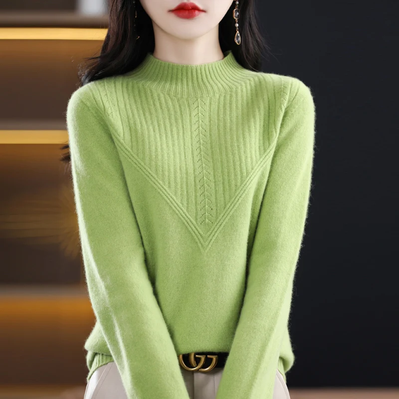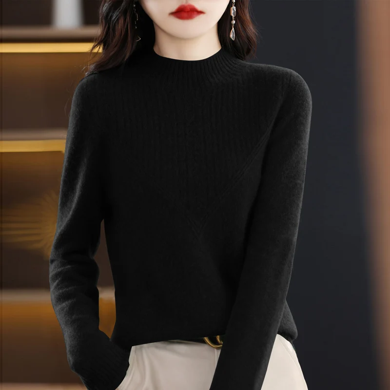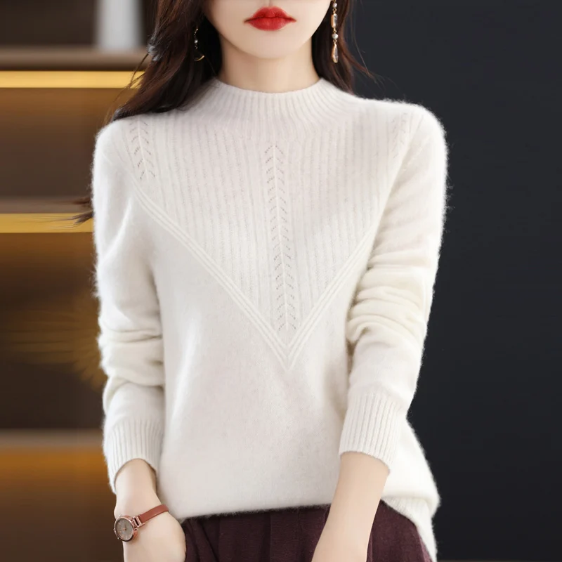 HBAuKqrSMHere you can buy First-Line Ready-To-Wear Wool Sweater Women Loose Half Turtleneck Pullover Spring Autumn Triangular Hollow Simple Bottoming Top with free delivery to your post office.