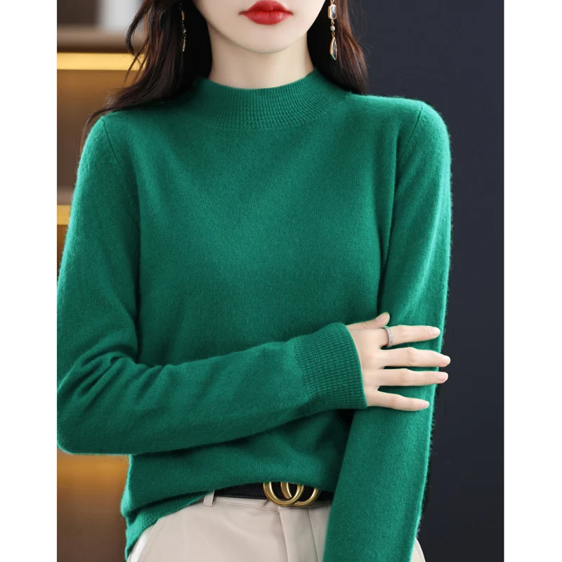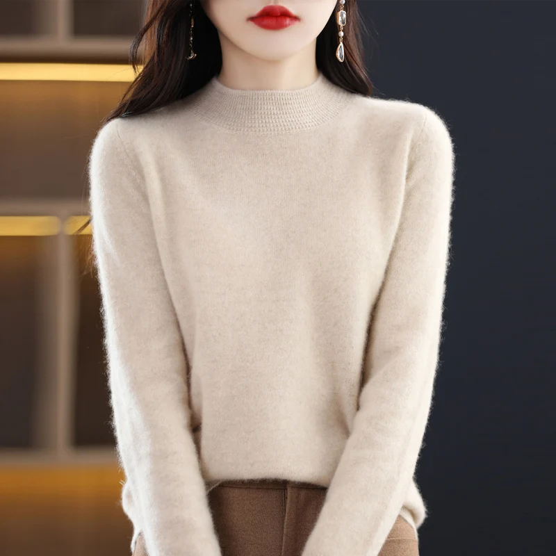 "First-Line Ready-To-Wear Wool Sweater Women's Loose Half Turtleneck Pullover Spring and Autumn Basic Style Simple Bottoming Top" * Buy Now With Free Shipping Just For $18