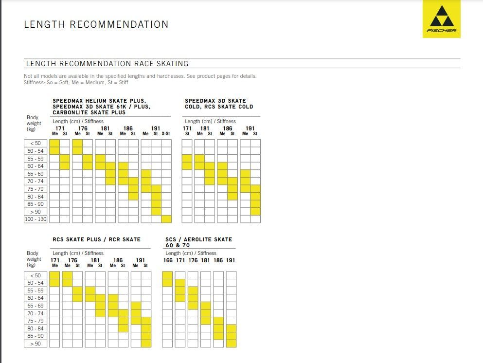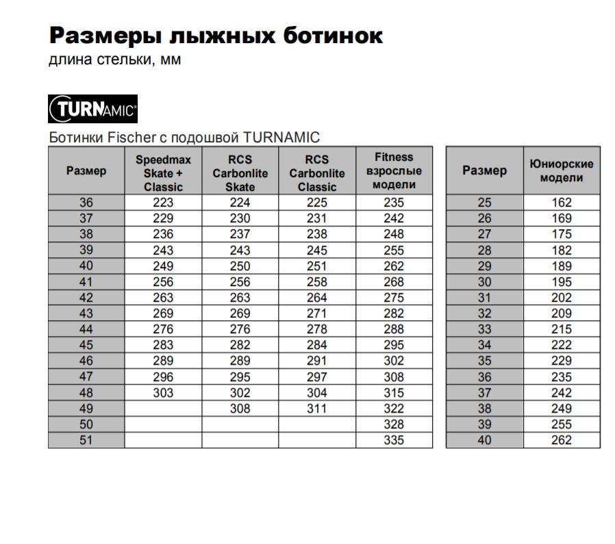 Fischer лыжи таблица