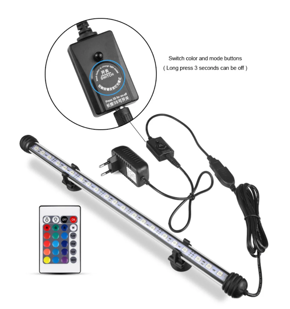 Fish Tank LED Waterproof Lamp Aquarium Lighting Remote Control Colorful Color Changing Landscaping Fill Light Tube 19/29/39/49CM - Купить с бесплатной доставкой
