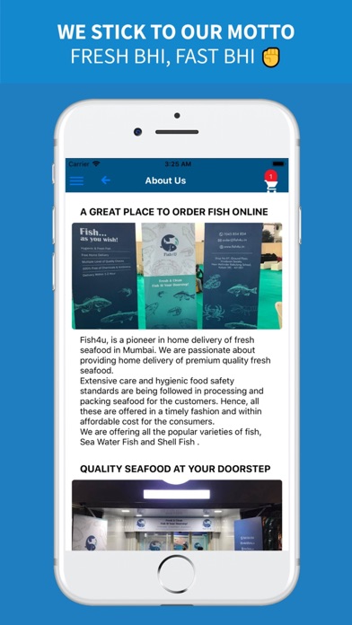 Fish4U . Fish4u , is a pioneer in home delivery of fresh seafood in Mumbai . We are passionate about providing home delivery of premium quality fresh seafood . Extensive care and hygienic food safety standards are being followed in processing and packing seafood for the customers . Hence, all these are offered in a timely fashion and within . . .