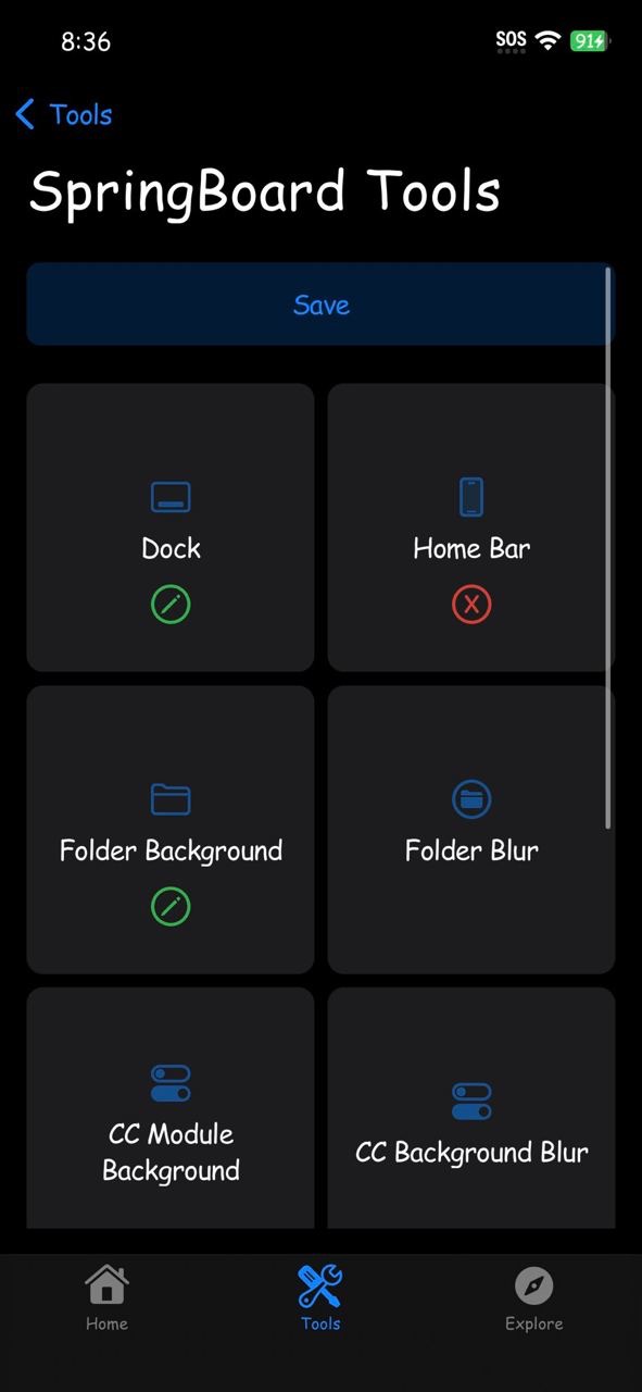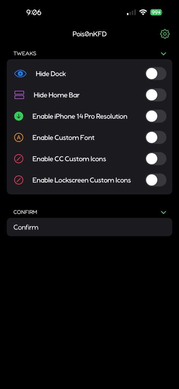 - posi0nKFD поможет скрыть док, домашний бар (полоска на моделях с чёлкой), изменить шрифт, иконки в пункте управления и на экаране блокировки.