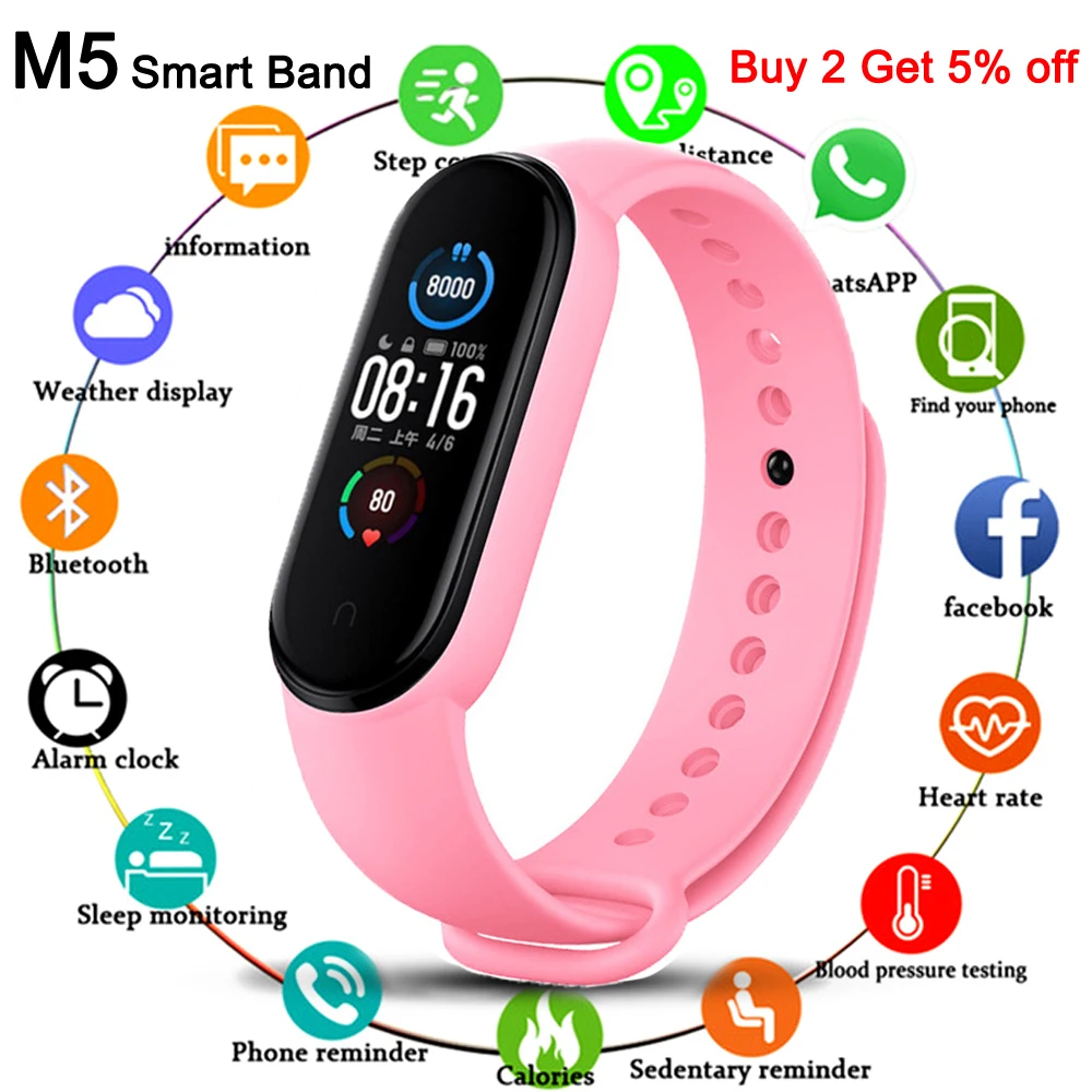 Смарт-браслет M5, совместимый с Bluetooth, спортивный фитнес-трекер, шагомер, мужской пульсометр, напоминание о звонках, умный Браслет . Enjoy special discounts! Скидка 72,53 руб . с каждых 1 740,80 руб . 1 Дополнительно Скидка 1% (от 3 шт .)