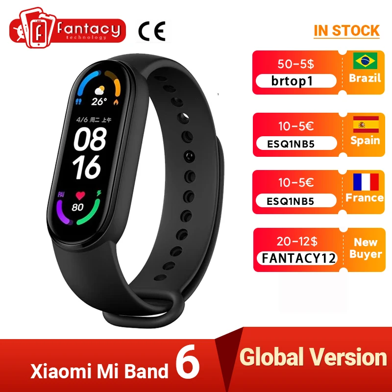 Водонепроницаемый смарт-браслет Xiaomi Mi Band 6, фитнес-трекер с AMOLED экраном, 5 цветов, Bluetooth . . .