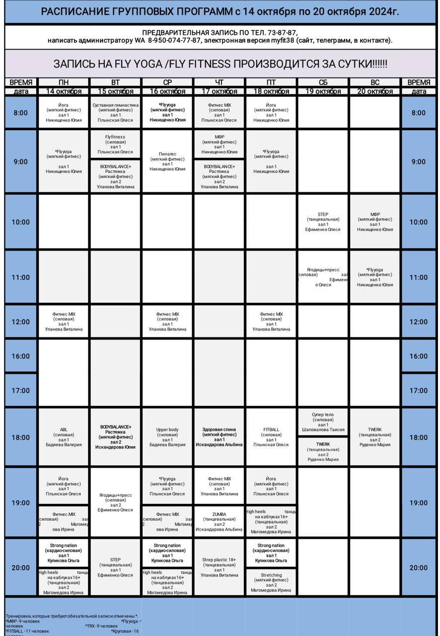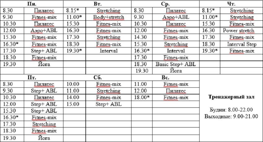 Фитнес клуб форма расписание