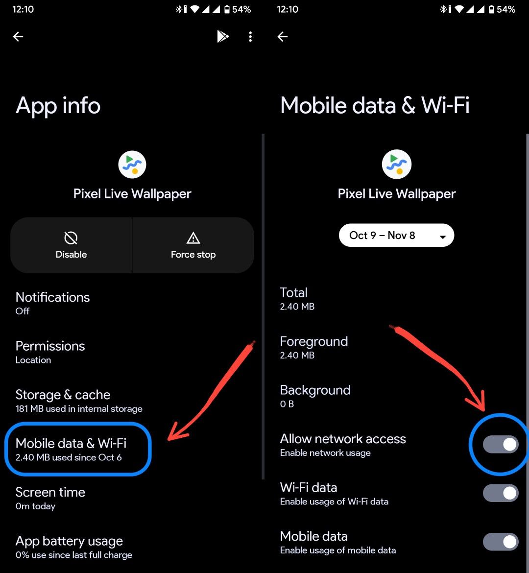 After going into the app info of Pixel Live Wallpaper app, go into Mobile data & Wi-Fi and Turn on the toggle for "Allow Network access"