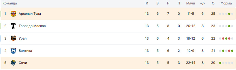 Фк арсенал тула таблица