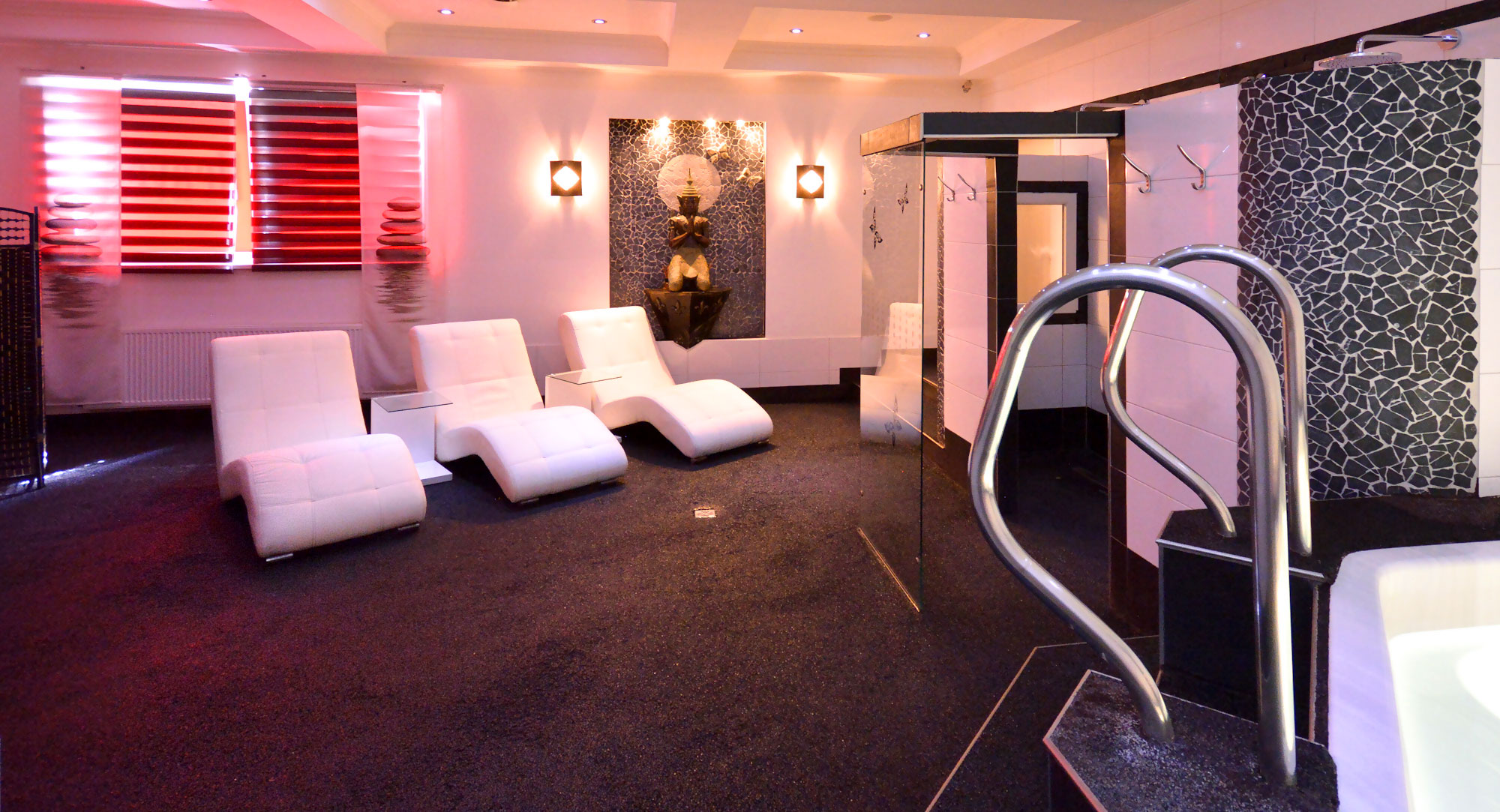 Neben kulinarischen Köstlichkeiten und erstklassigen Drinks erwartet Dich außerdem ein gepflegter und moderner Wellnessbereich, der alles für Dich bereithält, was Du zum Relaxen brauchst. Zunächst entspannst Du ein wenig in einer der Saunen und erholst Dich vom Stress des Alltags. Danach hüpfst Du in einen unserer Whirlpools, in dem sich just in diesem Moment vielleicht gerade ein paar Gäste aufhalten.