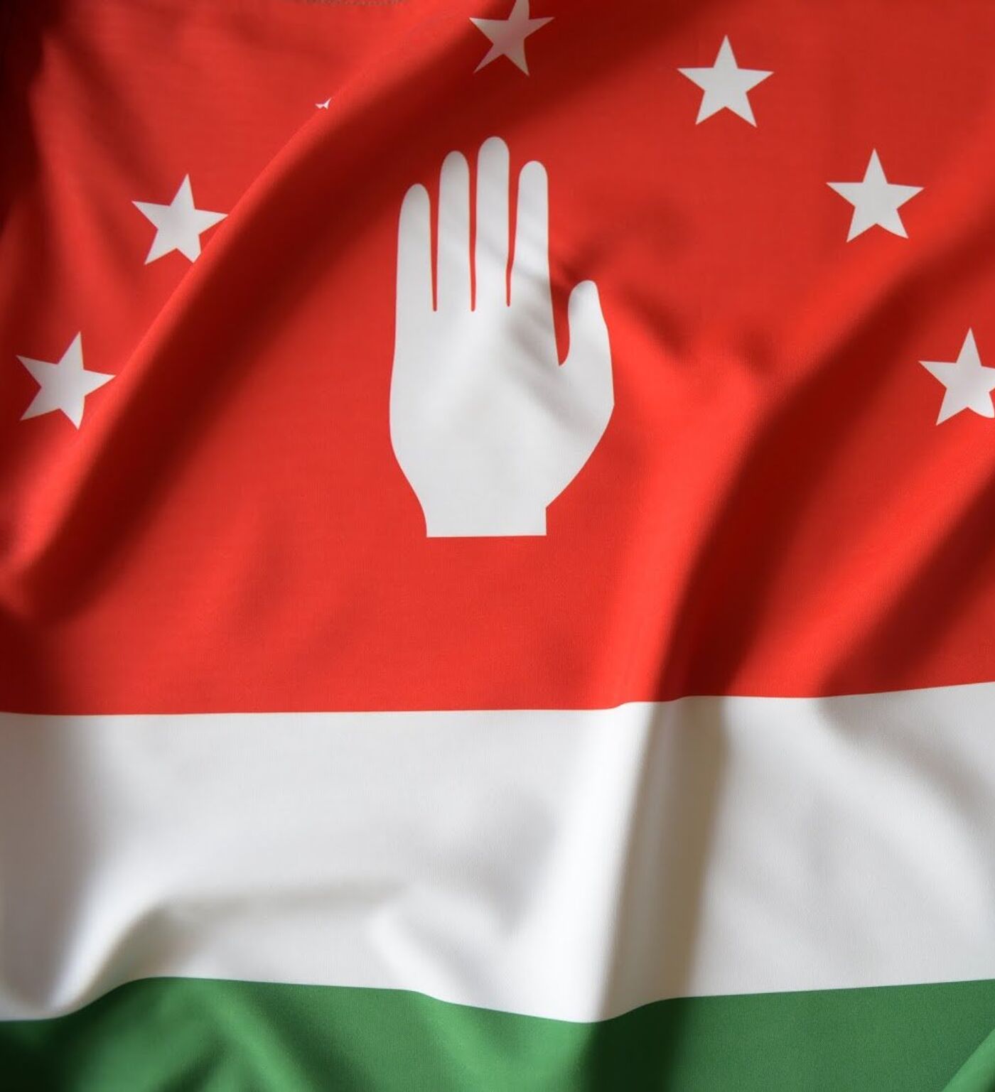 Флаг Абхазии - Flag of Abkhazia . Из Википедии, бесплатной . . . Белый флаг с голубой полосой внизу . В кантоне есть белая рука с семью звездами в полукруге над рукой .