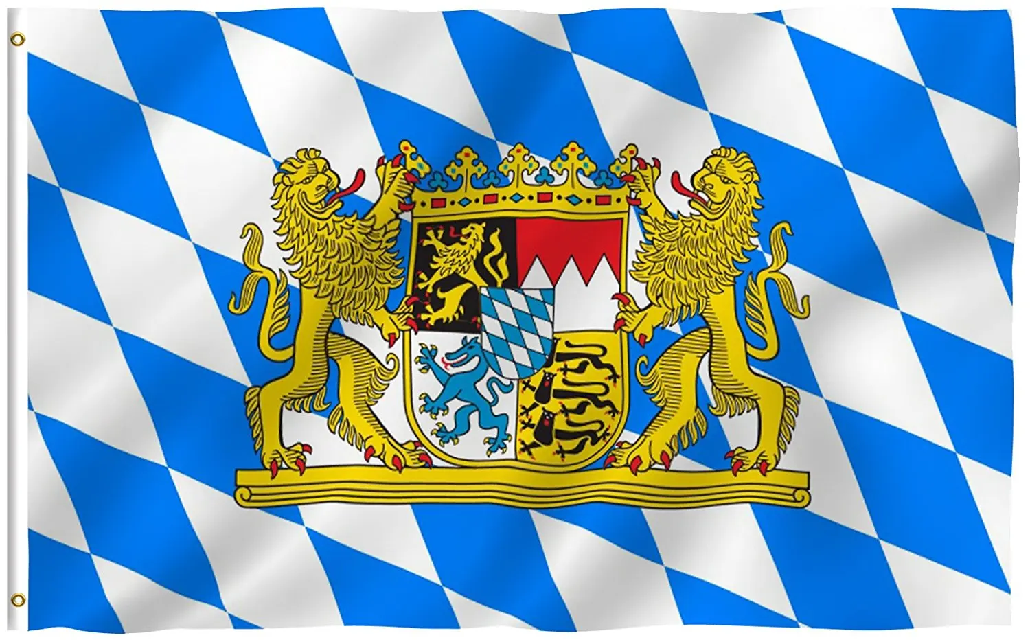 Герб Баварии позаимствован у графов фон Богенов жившим ещё до 1242 года, позже перешёл к роду Виттельсбахов, а потом стал символом всей Баварии . . . . что ромбовидный флаг несколько более . . .