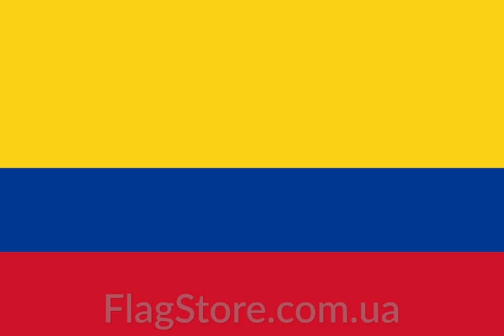 Государственный флаг Колумбии имеет прямоугольную форму и 3 горизонтальных полосы: желтую, синюю, красную . Верхняя желтая полоса занимает две четверти флага, синяя и красная - по одной .