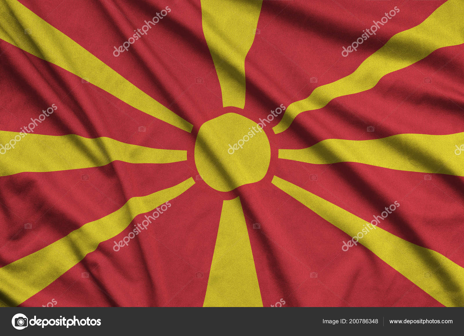 Флаг Македонии . На стяге Македонии изображено солнце желтого цвета на красном фоне . Оно расположено по центру, имеет восемь лучей, которые расширяются на концах .