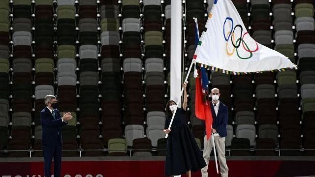 Традиционная церемония передачи олимпийского флага . . .