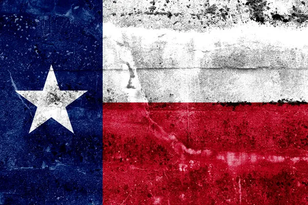 Флаг штата Техас, нарисованный на гранж-стене Даллас, Техас, США Заброшенная новая звезда на трассе 66 в США
