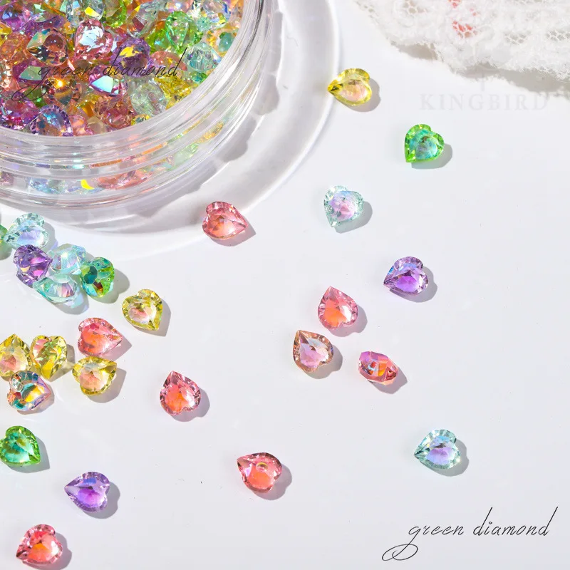"Flashing Ice Drill:Japanese Heart-Shaped Pointed Bottom Rhinestones Multi-Colored Aurora 3D Crystal Glass Fingernail Decorations" * Buy Now Just For 1$