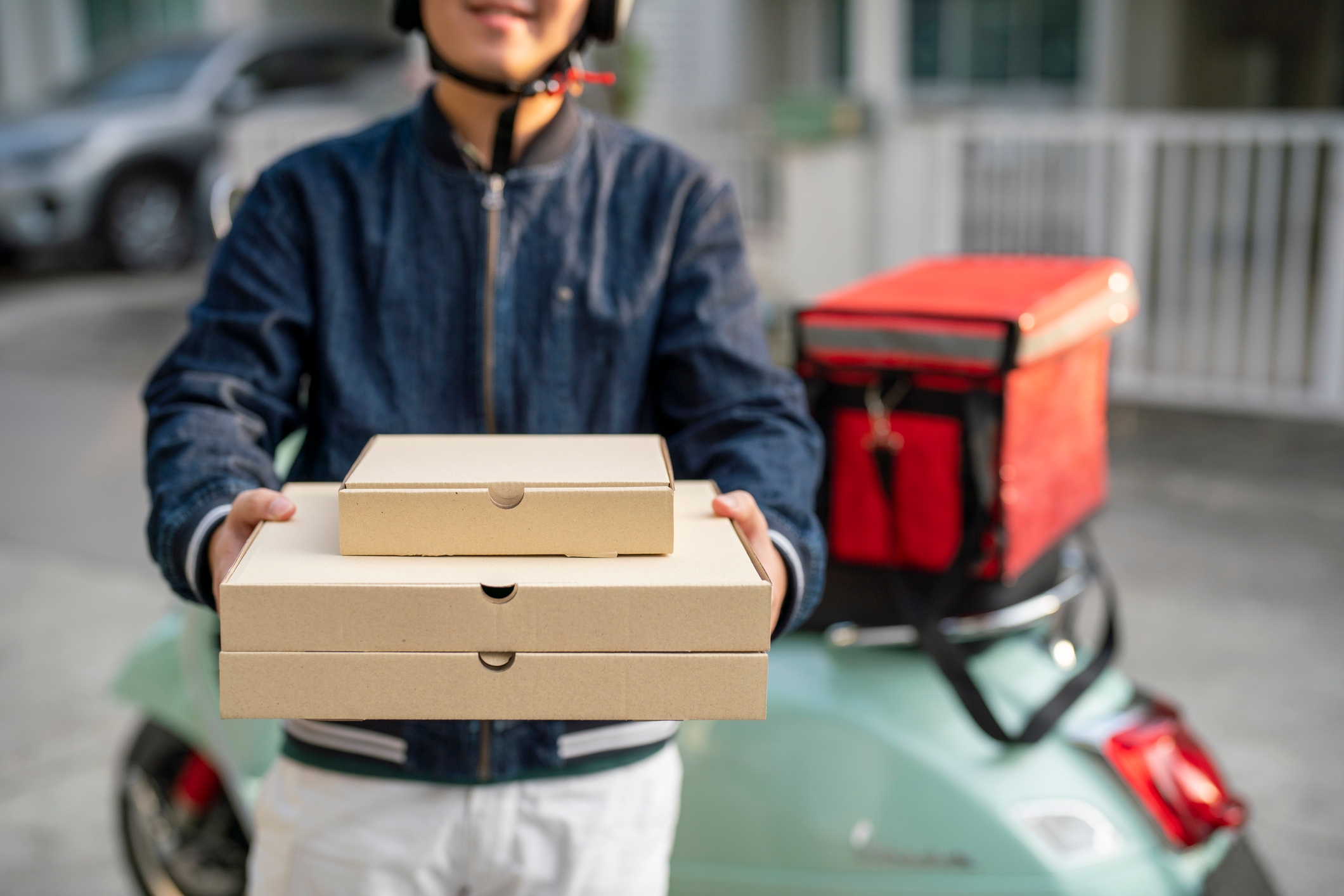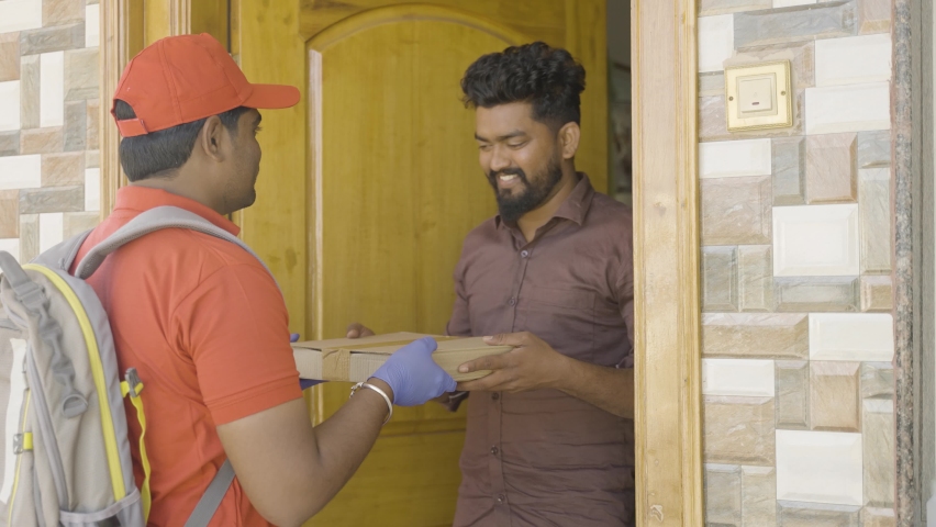 Flashing delivery boy