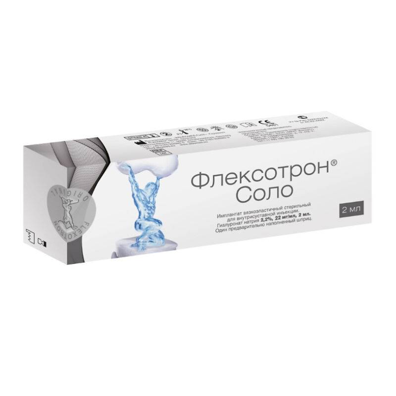 Флексотрон Смарт протез синовиальной жидкости, предназначенный для вязкоэластичного протезирования синовиальной жидкости у пациентов с дегенеративно-дистрофическими и посттравматическими поражениями суставов, а также у лиц, имеющих повышенные нагрузки на поврежденные суставы .